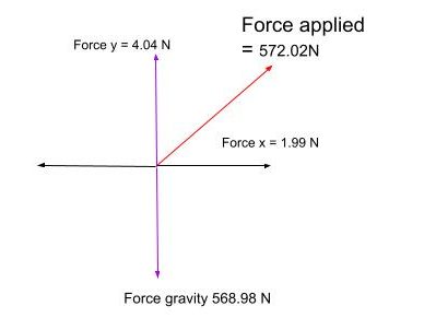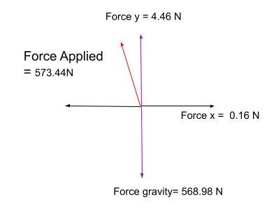 Force applied on arms and hands = √(573.02 N² + 1.99 N²) = 573.02 N